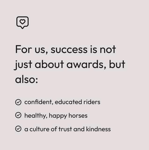— a barn led by love, integrity, and shared passion, without the drama, politics, and negativity that too often define the equestrian world.