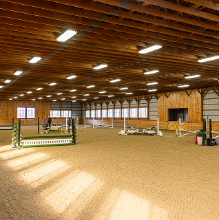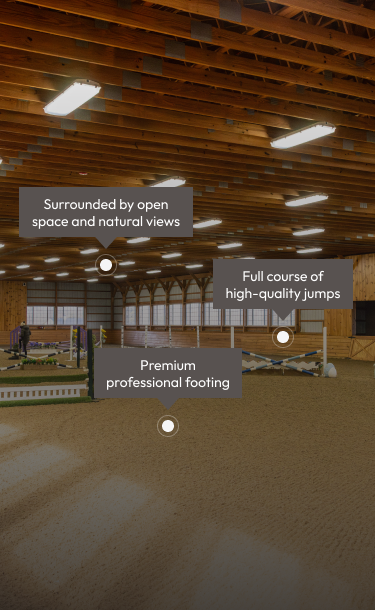 The gorgeous, temperature-controlled indoor arena allows for year-round training in comfort and safety. This space blends performance with convenience, making long days at the barn both productive and enjoyable.